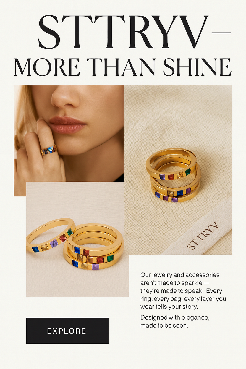 STTRYV curates a sophisticated selection of bracelets, fine jewelry, designer bags, and exclusive clothing. Each piece is designed to embody elegance, confidence, and timeless style, making STRYV the destination for those who value both luxury and authenticity.